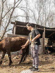 Damián le coloca el cabezal a Reina y arma el atalaje. Hace seis años que lo acompaña. “Come mejor que nosotros”, me dice riéndose mientras le acaricia la frente. Una de sus tareas diarias es recolectar pasto para alimentar a Reina. Hay muchos baldíos, pero cuando hay sequía es difícil conseguir buenos pastos. En cierta ocasión una persona que pasaba lo acusó de maltratarla, y eso lo molestó profundamente. En su escala de prioridades come primero su familia, luego los animales y por último él. “Si no tengo comida, prefiero que coma Reina antes que yo. Si es mi herramienta de trabajo, ¿cómo voy a maltratarla?”, dice.